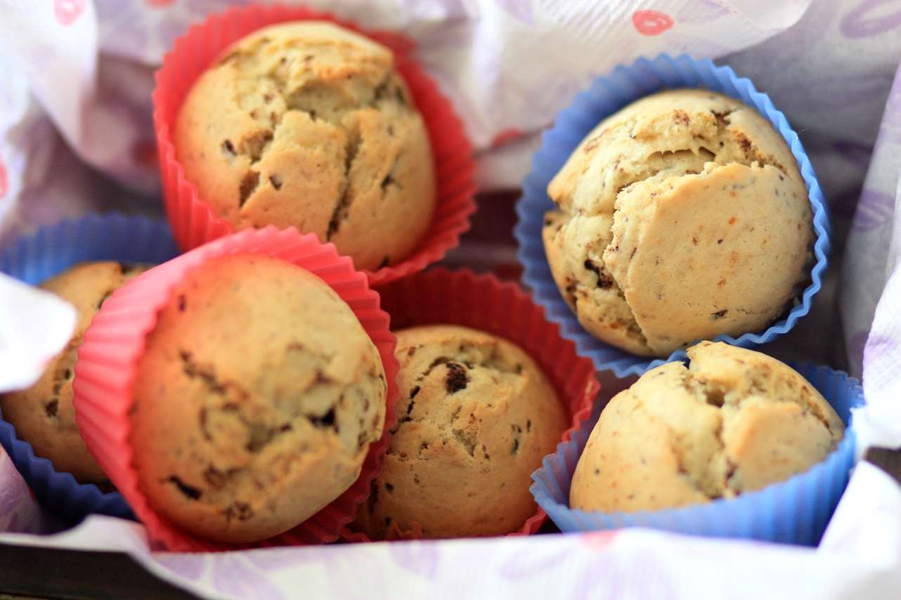 Anyway, so a lot of our Gujarati friends gave us sweets and dishes prepared specifically for Uttrayan that day. This weekend I thought I should return the favour and so early in the morning I sat out to make these delicious Banana-Chocolate muffins. I had first used bananas in baking because they had gone too ripe to be eaten and I haven’t looked back since! Banana is one of my favourite to bake withJ. And so is chocolate! So what could be a better combination than Banana-Chocolate muffins. The recipe is adapted from Nigella Lawson’s Banana Butterscotch Muffins in Nigella Express.