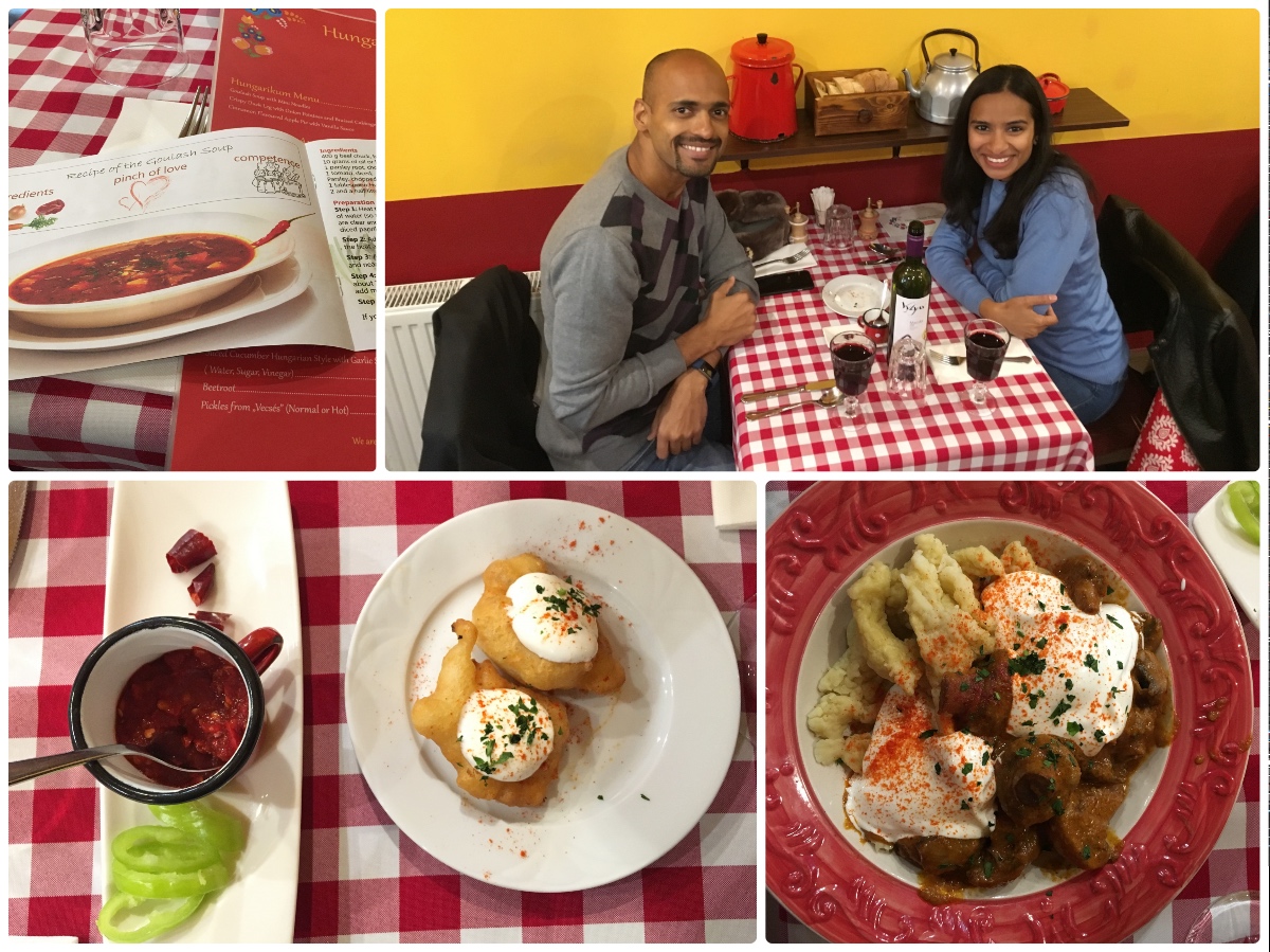 A Hungarian cuisine restaurant which was recommended as vegetarian friendly. It is a delightful little restaurant serving traditional dishes, exactly the way they are supposed to be. I loved the Lángos – fried cheese and dough dumplings! Also the mushroom paprikash, which is like a mushroom curry with their traditional dumpling pasta, was nice. The pasta takes some getting used to. It was very dough-ey for me. Vegetarian choices are limited in traditional Hungarian cuisine but we had to try local flavours.