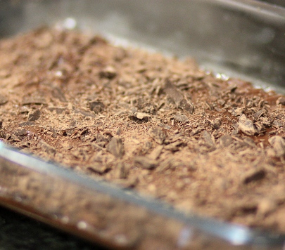 - Spread the batter onto the prepared dish and sprinkle the chocolate shavings/ chips generously 🙂