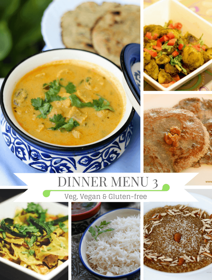 Keeping these in mind, I have prepared these 4 Diwali dinner menus or dinner ideas that you can use on any occasion. Each of the menus has starters, mains, accompaniments and desserts. Since diet restrictions such as vegan and gluten-free are fairly common these days, I have included dishes catering to all. You can choose any of the dinner menus as is or you can mix and match between the menus to make your menu!
