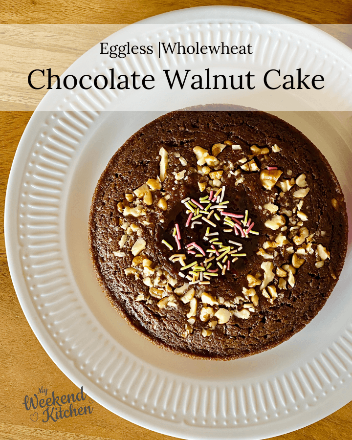 This eggless chocolate walnut cake is made with wholewheat flour, cocoa powder and lots and lots of love for a very special person!