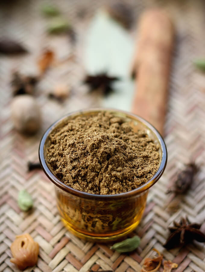 Garam Masala is the most popular Indian spice blend. It adds a special earthy flavour and a spicy ‘kick’ to regular dishes. I use it when I am cooking heavier gravies like Rajma Masala or paneer curry or pilafs.