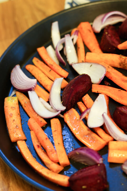 This salad perfectly fit in the #donothing plan. Sikander helped chop the veggies and the oven did the rest of the work.