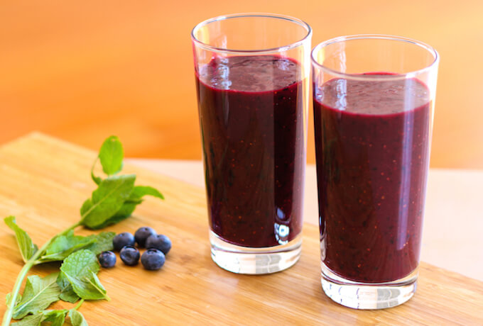Enjoy this very berry smoothie of blueberries, strawberry, raspberry and blackberry with a hint of mint; before the fresh berries are completely off the market. You can even freeze the ingredients in a freezer bag and simply pop them in a blender to enjoy this healthy breakfast smoothie even after the berry season is over.