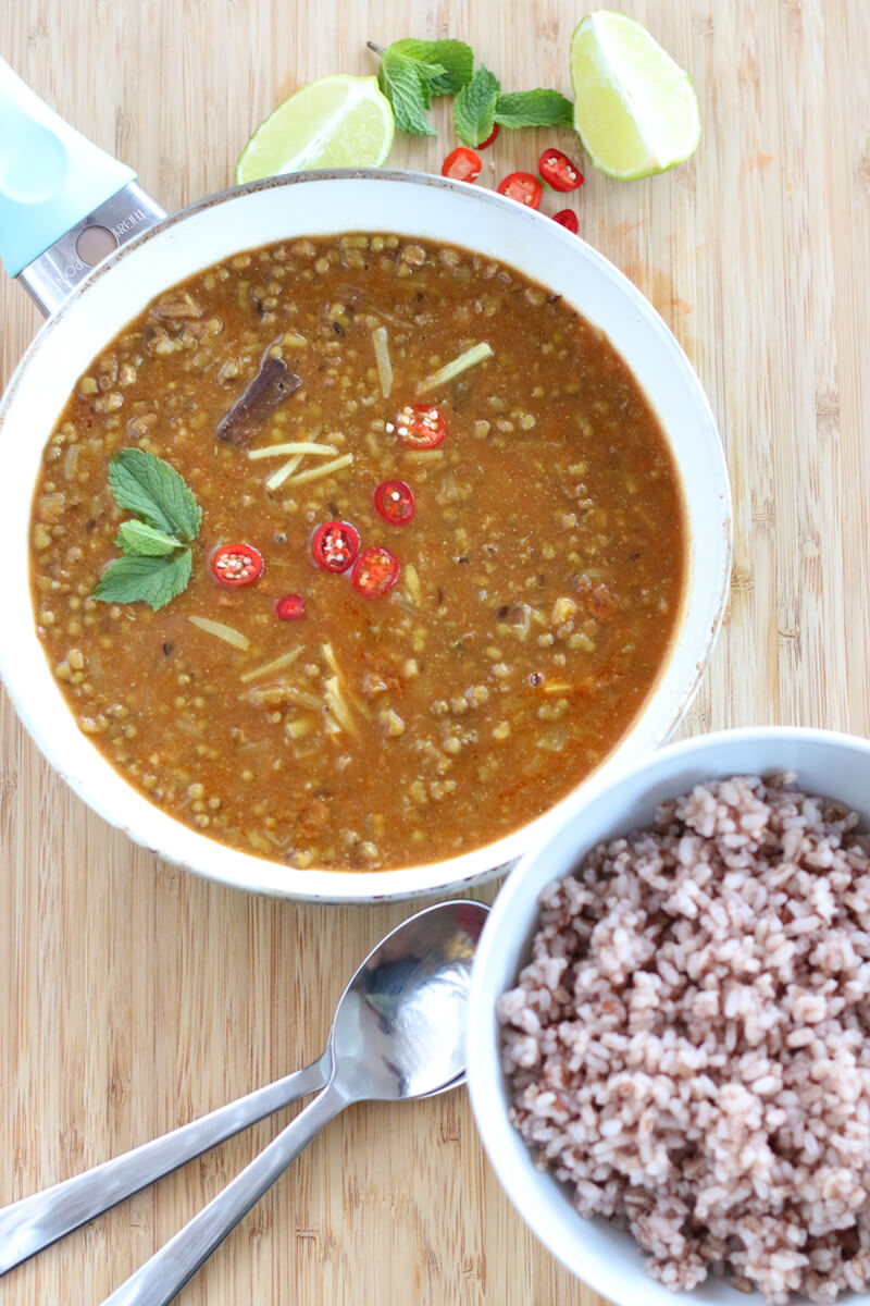 You can serve this mung bean curry as a soup as well. It is very filling and perfect for a one pot meal.
