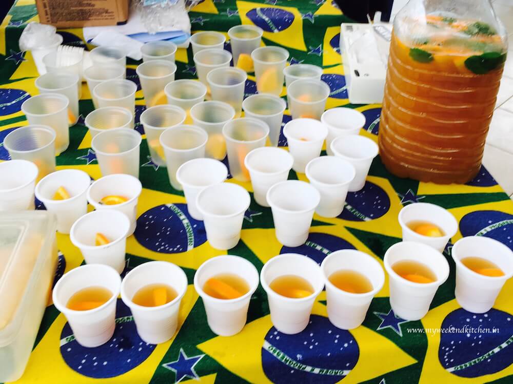 This Thursday, I made this orange iced tea for them. It’s fresh and doesn’t take must effort either. I prepared the orange tea concoction in the morning before going to gym. By the time I was back it was cool enough to go in fridge and then just before leaving I mixed it with cold water and orange slices. Apart from filling the bottle with orange slices, I also took lots of orange slices separately to put one in each cup. They were so happy by just looking at it.