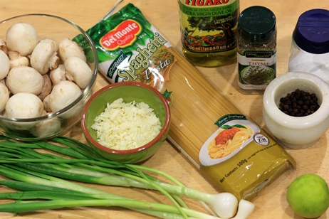 I remember eating a mushroom and garlic salad in one of the restaurants and I just kind of converted that into a pasta recipe and that’s why I even call it spaghetti with mushroom salad! The only thing which takes time in this recipe is cooking the pasta, rest it mainly is chopping and mixing!