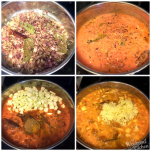 One the seeds start to sputter, add onions and garlic. Mix well and cook for a couple of minutes till the onions start to soften.